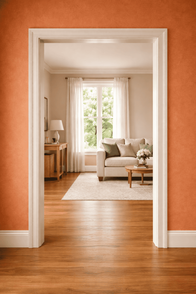 • The paint on the baseboard is chipped.